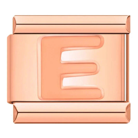 Letter E in Rose Gold, on Rose Gold