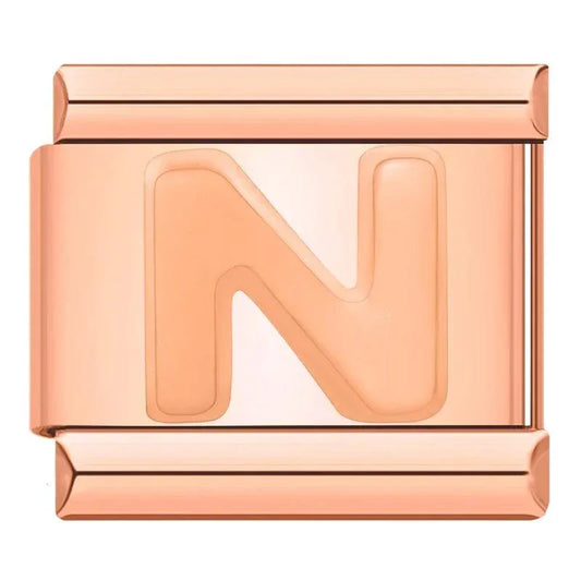 Letter N in Rose Gold, on Rose Gold