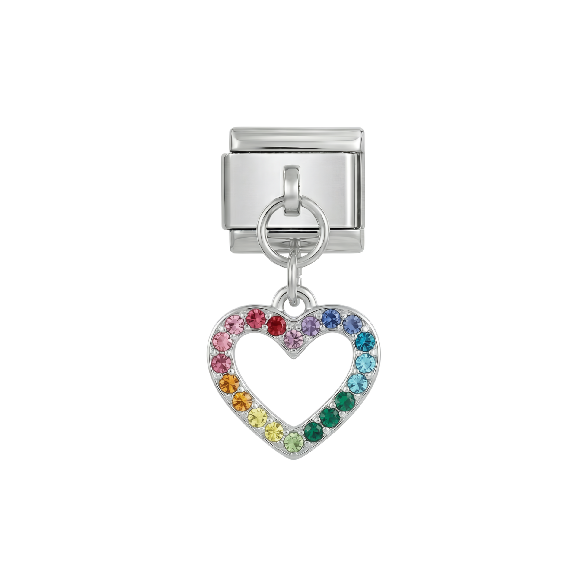 Herz mit mehrfarbigen Steinen, auf Silber